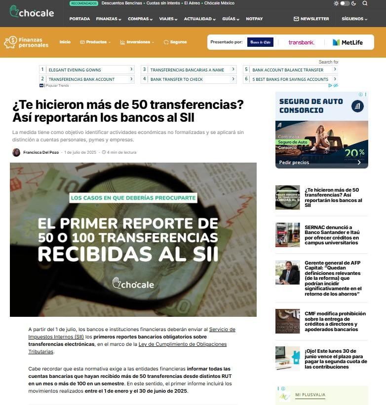 "Más de 50 transferencias al mes: ¿a quiénes afectaría la Ley de Cumplimiento Tributario?"